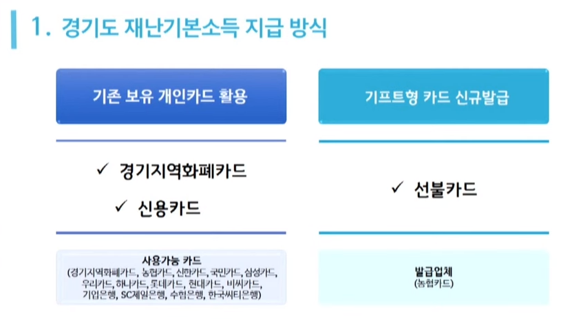 - 기존 보유 개인카드 활용(경기지역화폐카드, 신용카드) => 4월 9일~ 4월 30일 까지 신청 입니다.